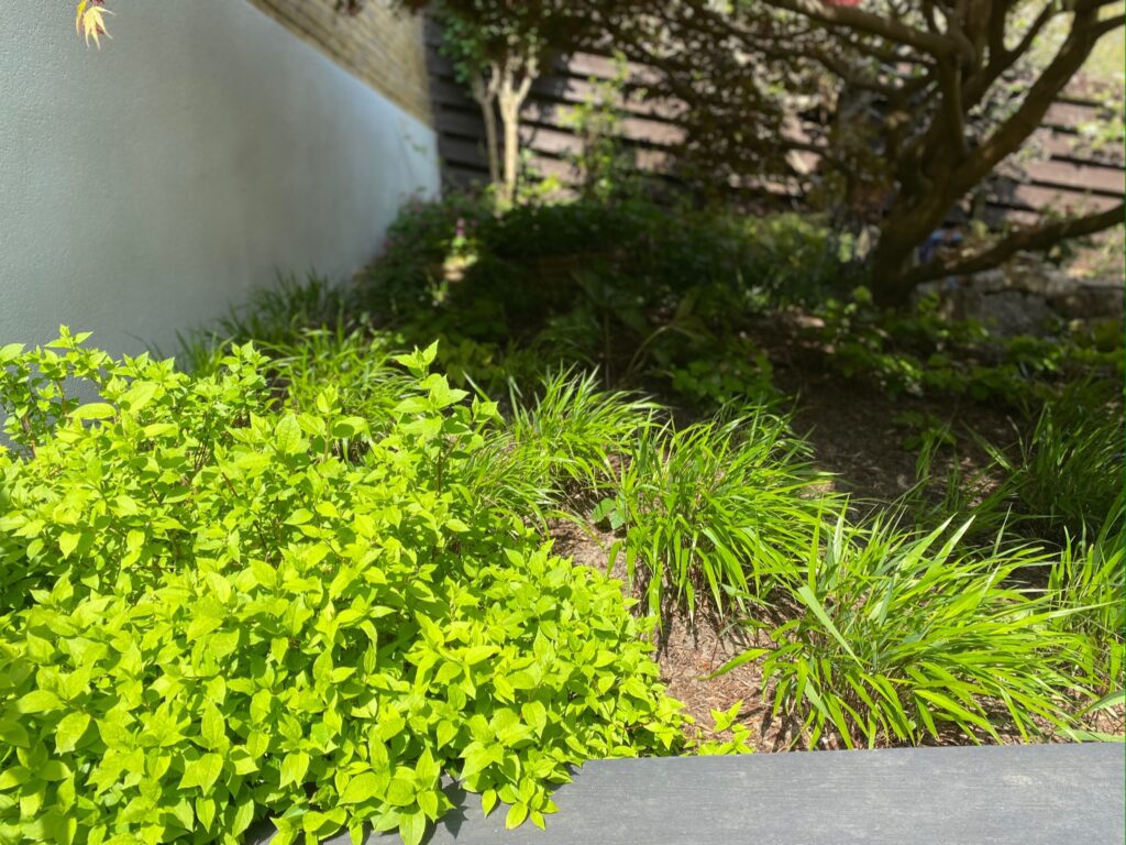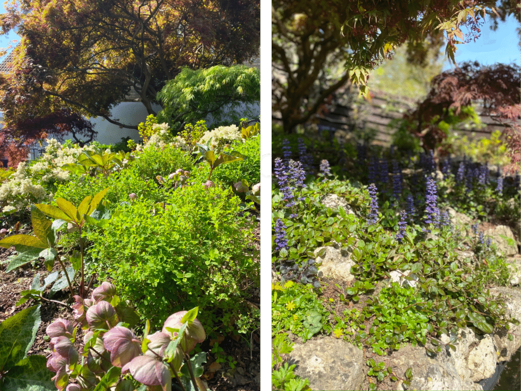 We designed a thoughtful planting scheme, incorporating plenty of shade lovers (Ferns, Hellebores, Hydrangeas) plus some ground cover (Ajuga, Epimedium, Galium, Geranium) and the result is a beautifully calm and serene space.
